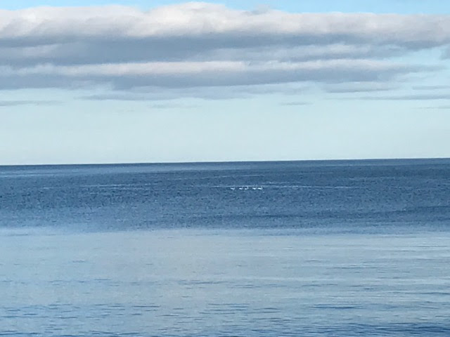 Swans swimming across the sea (in the distance); a collection of snail shells, and more intent listeners!